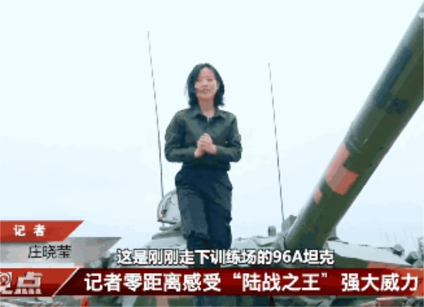 她可以近距离介绍“近战之王”坦克,在上面走动又台下,干净利落。