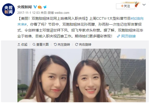 高中时,她俩同时被保送到复旦大学,之后又同时考取哈佛大学的研究生,毕业后同时加入央视。