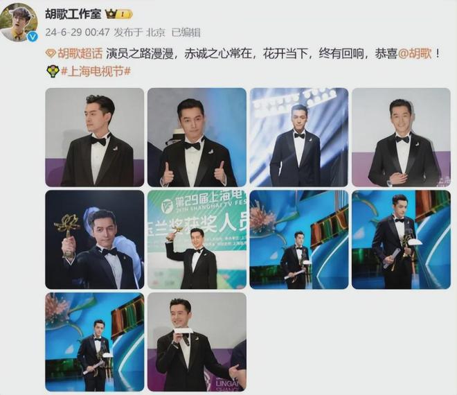 6 月 28 日,胡歌凭《繁花》获奖白玉兰最佳男主角奖。