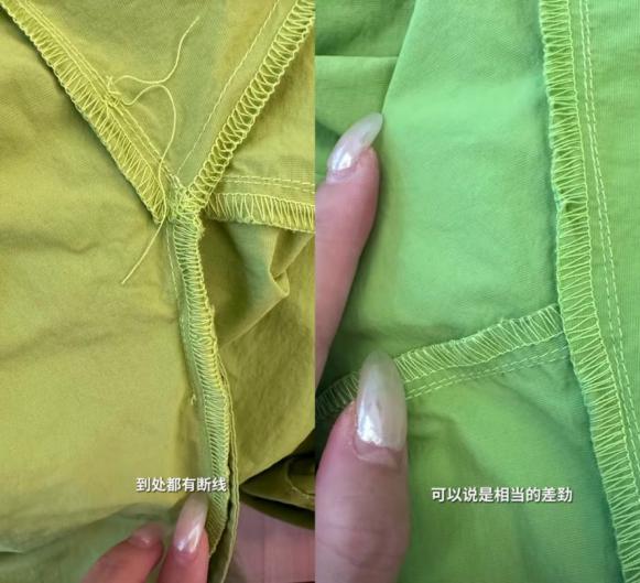 该博主展示的衣服质量问题截图。/@大四喜