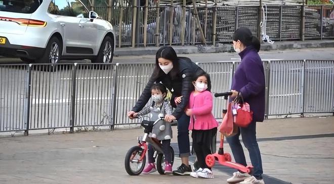 上一次郭晶晶和霍启刚是带着孩子们一起在云南的海边体验骑自行车。