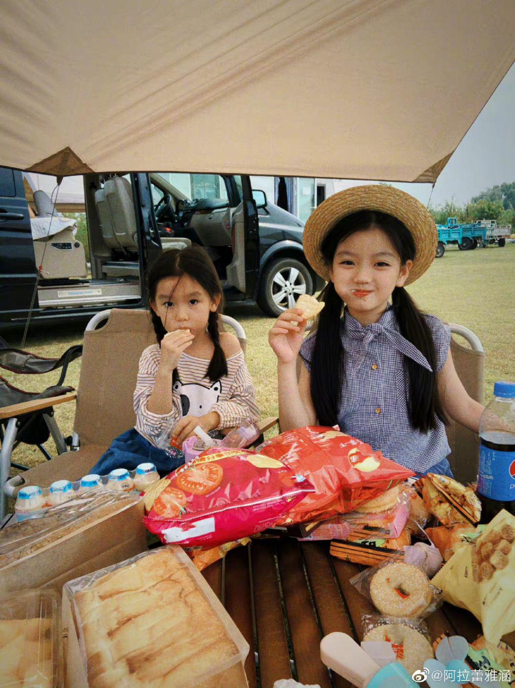 阿拉蕾在亲子综艺《爸爸去哪儿》曾因为超出年龄的懂事,以及时不时脱口而出的 " 金句 " 而深受大众喜爱。图片中,阿拉蕾正在给妹妹擦嘴,动作非常熟练。而从妹妹任由姐姐擦嘴,听话的样子中,也可以看出才 10 岁的阿拉蕾就将妹妹照顾得很好。