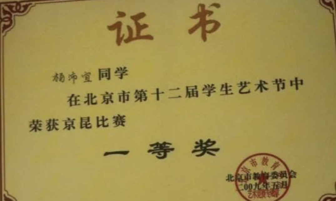 到了2008年,杨沛宜在一次偶然的机会下,报名参加了海淀区举办的中小学声乐比赛。