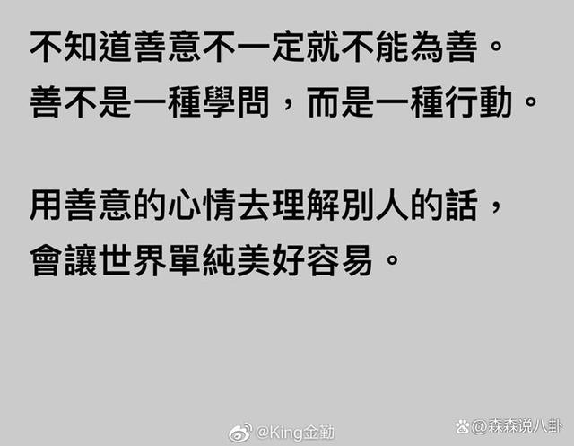 杨丞琳小时候吃不起海鲜,并不是什么新鲜事,有槽点但不至于闹得满城风雨,台湾女歌手阿爆(阿仍仍)受访表示,现在看到的只是一个片段,这个片段会产生不同的阶段,资讯要多一点才能片段,声援杨丞琳。杨丞琳的闺蜜金勤在微博为其发声:" 用善意的心情去理解别人的话,会让世界单纯美好容易。"