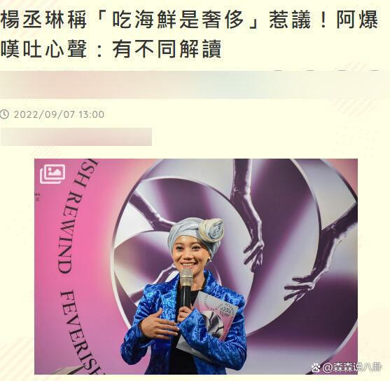 " 杨丞琳吃不起海鲜 " 被台湾媒体和电视节目无限放大," 名嘴 " 们吵得比俄乌战争还要热闹,更有娱乐圈的边缘人蹭热度,长篇大论攻击杨丞琳。