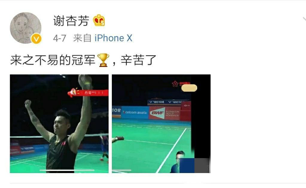 结果第二天,谢杏芳就晒出了两张林丹在球场上的照片,并配文:来之不易的冠军,辛苦了。言语之间,无不透露着骄傲。