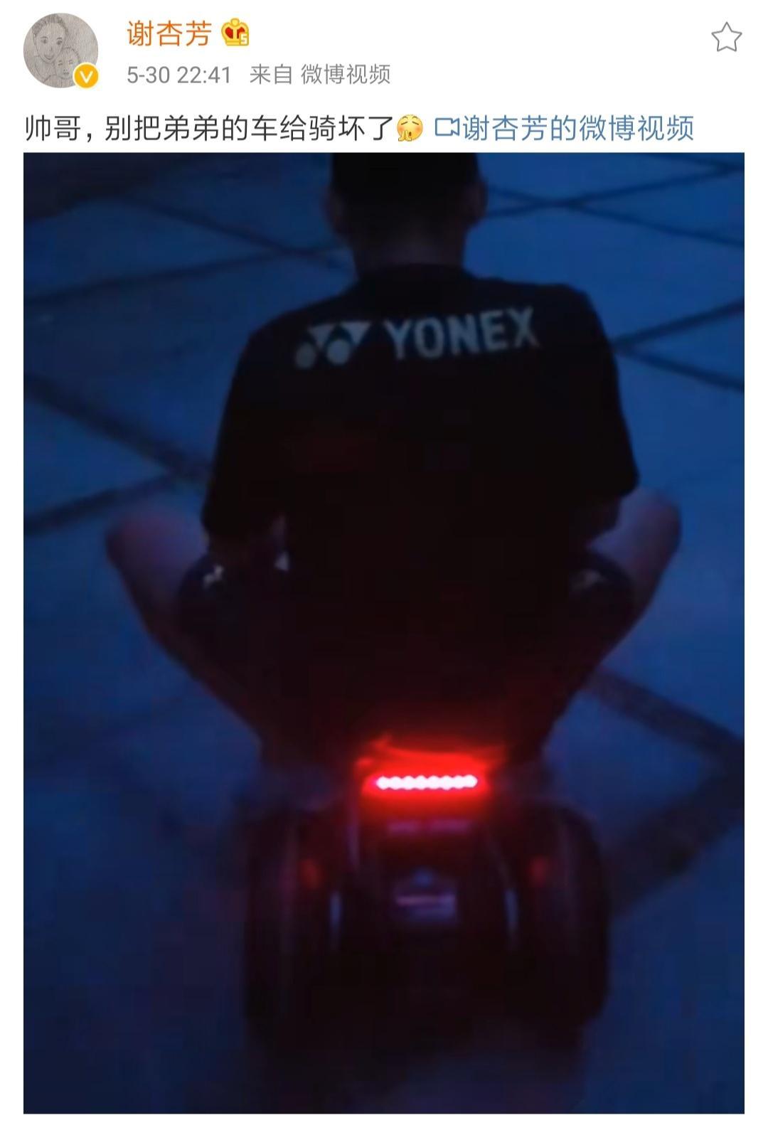 五月末,谢杏芳还在社交平台上晒出林丹的背影,视频中林丹骑着儿子的小汽车,模样十分滑稽,而谢杏芳更是调皮的配文:别把弟弟的车给骑坏了,惹来不少网友的爆笑。