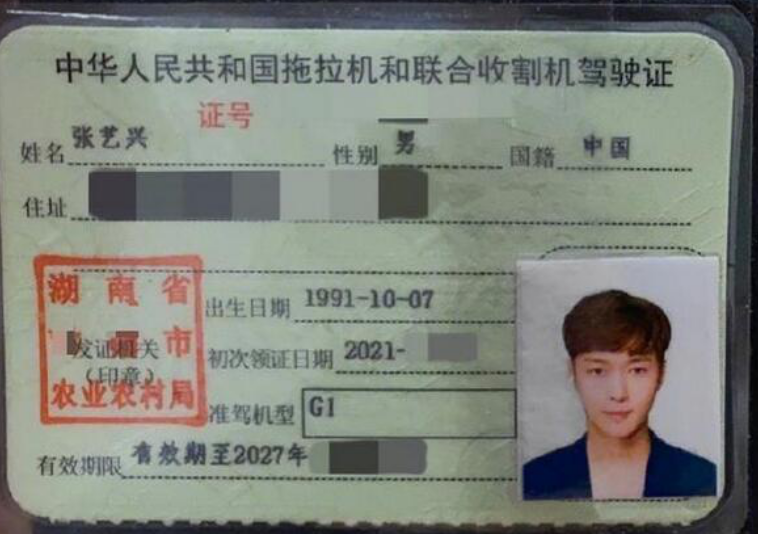 拿到驾驶证后,张艺兴也难掩心中的兴奋,大方在社交平台分享自己的拖拉机驾驶证。在张艺兴分享的图片上可以清楚地看到,驾驶证的初次领证日期是2025年,可见确实是为了《向往的生活》而考的。未来如果你看到张艺兴开着拖拉机,一定不要觉得惊讶,因为人家那是专业的!张艺兴的工作人员还透露,张艺兴在考试过程中拿到了96分的高分,妥妥的学霸啊。据说张艺兴拖拉机的驾驶证照片,还被工作人员贴在了工作室的墙上,可见张艺兴对这件事的重视程度。