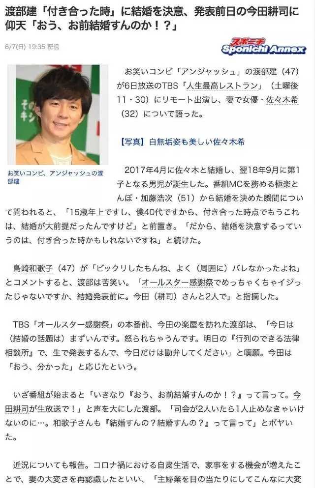 在周刊爆料之后,渡部建通过自己的经纪公司,承认了出轨一事。