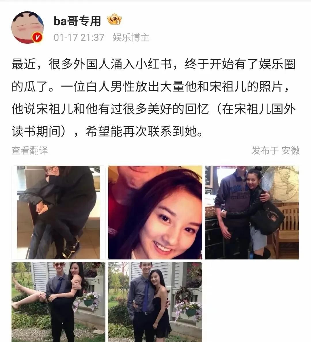 大瓜?白人男生发帖寻找宋祖儿!晒出好多亲密照,女方很主动拥抱