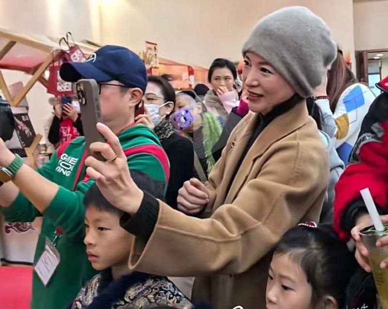 董卿拿着手机全程录像,看上去颇有兴致,应该是被什么东西所吸引,再或者是登台的她儿子。