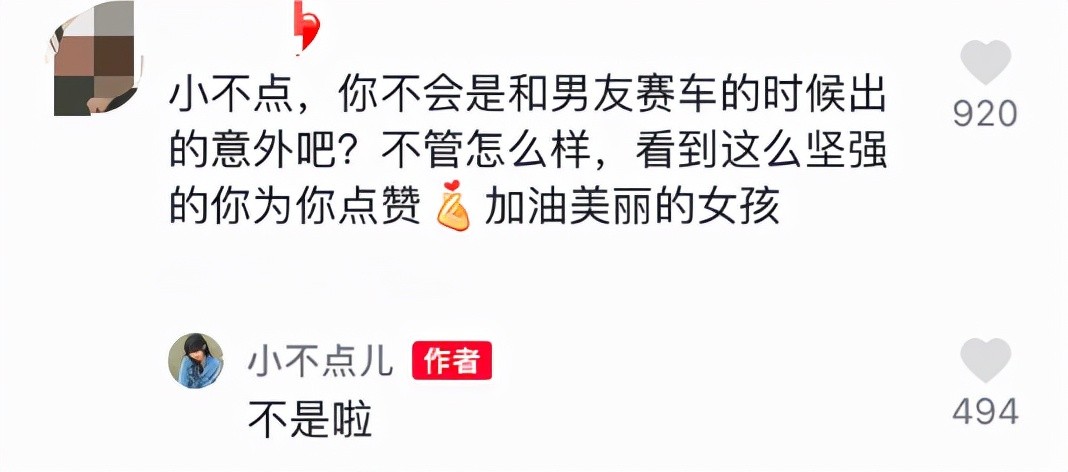 还有人质疑“小不点儿”是因为和男友赛车遭遇车祸,才导致惨剧的发生,很快这个猜测也遭到了“小不点儿”否认。