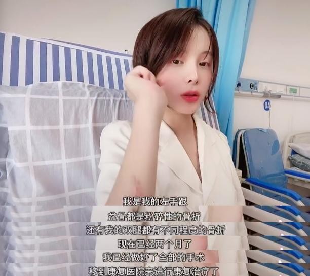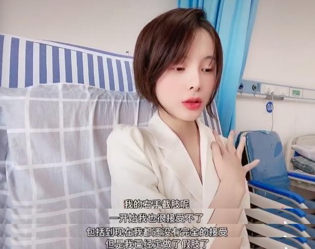 美女网红出意外右手截肢,全身骨折还不能走路,受伤严重仍乐观