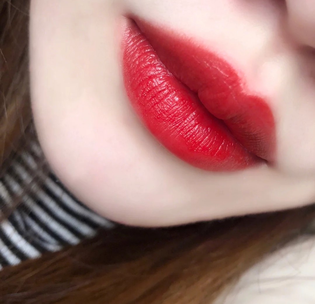 这只被官方命名为“女神红”的口红色号也是今年很多人的人头爱。颜色是一个棕调的正红色,但上嘴并不偏棕,只是比正红色暗一点点。颜色要更饱满浓郁,像极了一颗红宝石。半哑光的质地很好推开,涂上润唇膏就能打造红玛瑙的视感。因为颜色很浓郁正红,涂上之后很显皮肤白,黄皮小仙女也不怕。