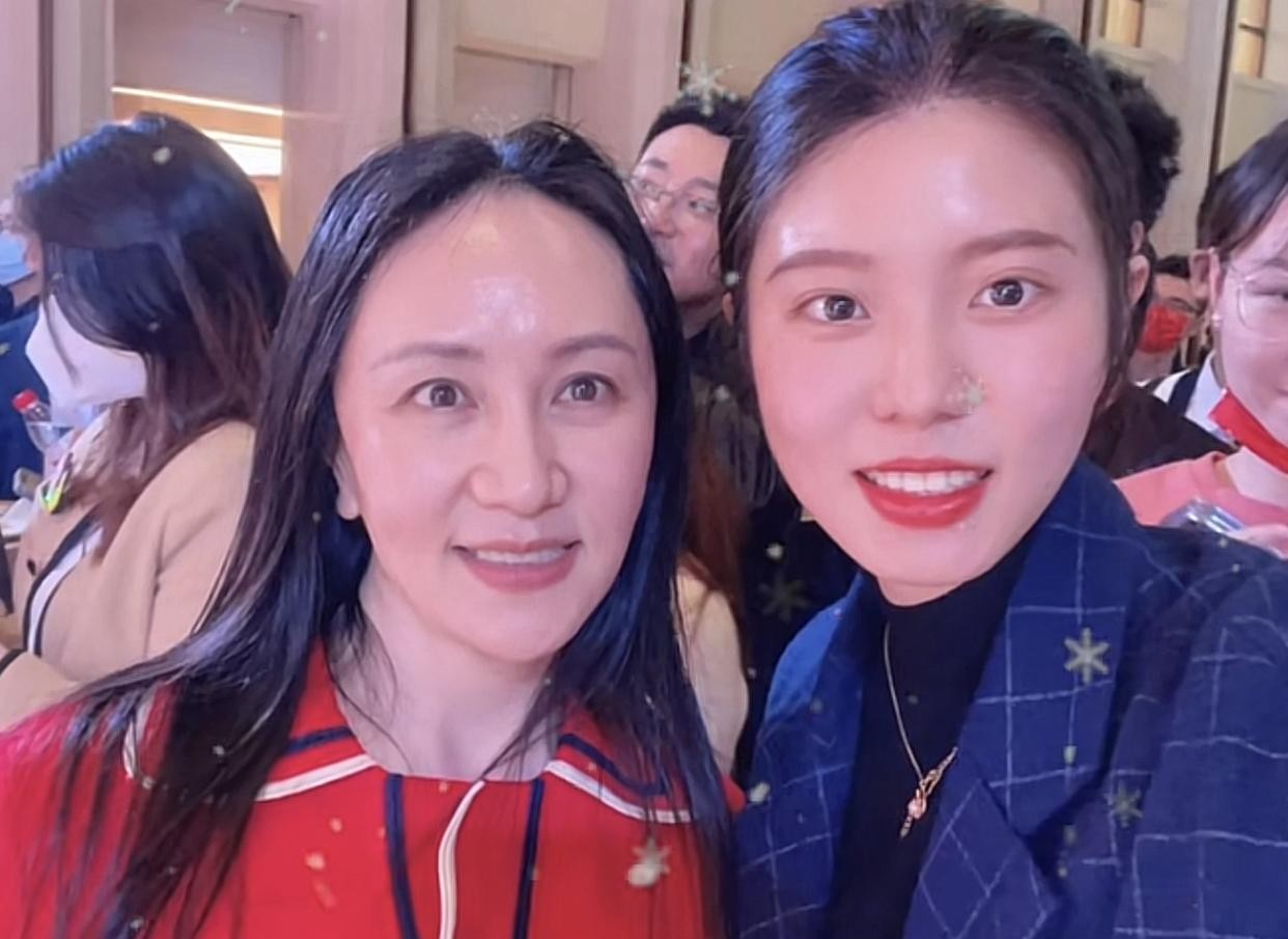 孟晚舟与美女网红合影,脸型大变瘦成锥子脸,五官精致气质优雅