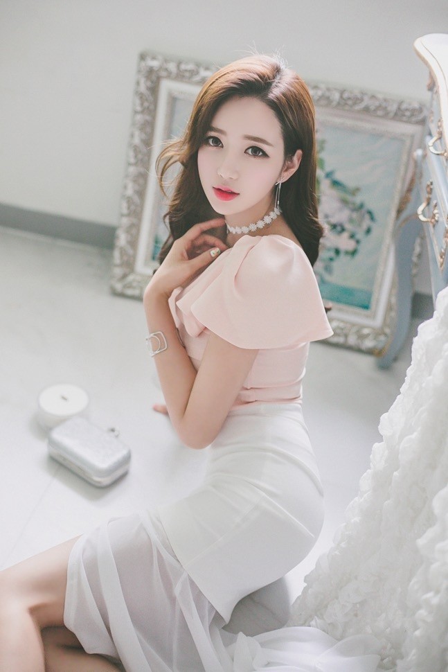 一袭粉色上衣,搭配白色纱裙,妥投的时尚女神啦!