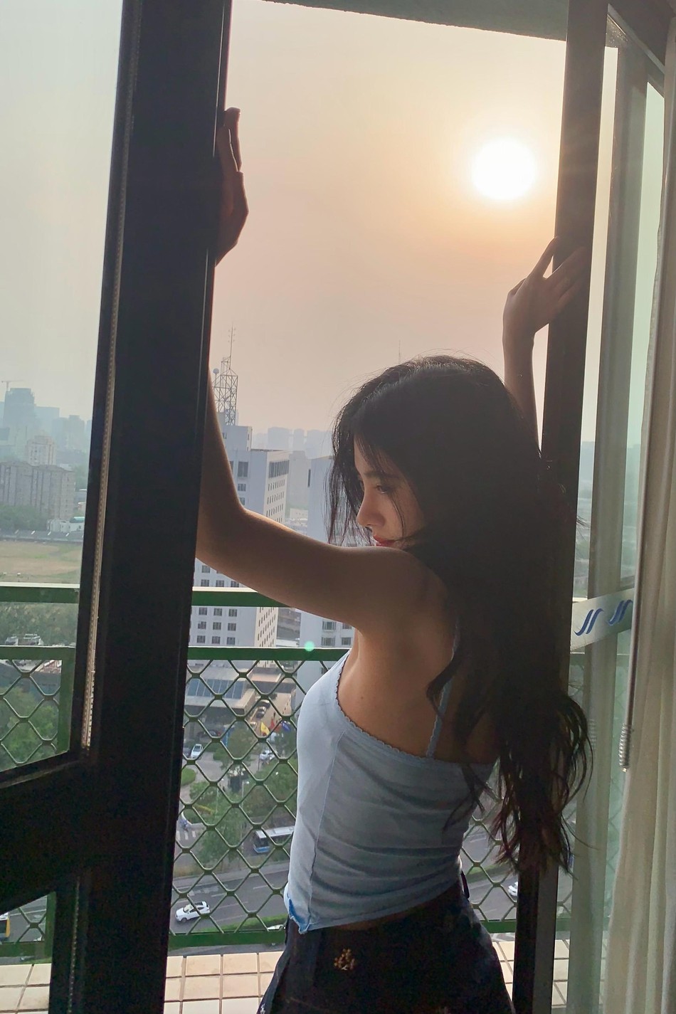 鞠婧祎穿露脐装秀长腿称:假期晒库存照