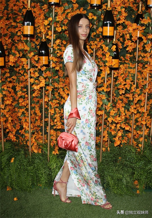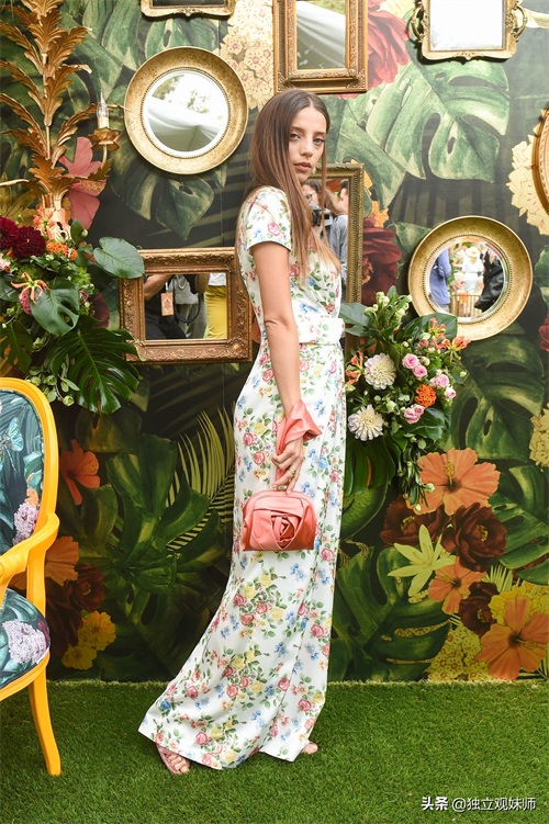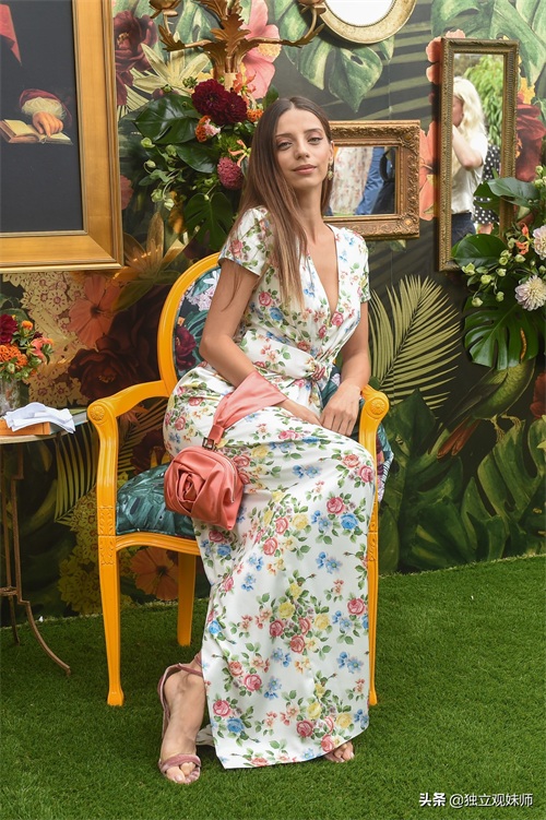 印花民族风真丝长裙,完全烘托出了她完美的身材!
