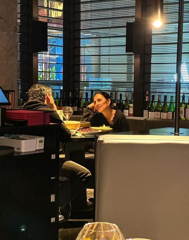 刘烨妻子和一位男子聚餐,吃川菜配葡萄酒,43岁安娜松弛感明显