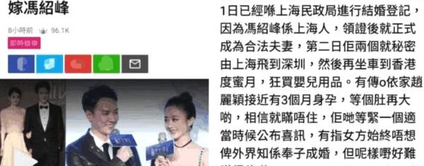 冯绍峰赵丽颖被爆已领结婚证,这是奉子成婚?