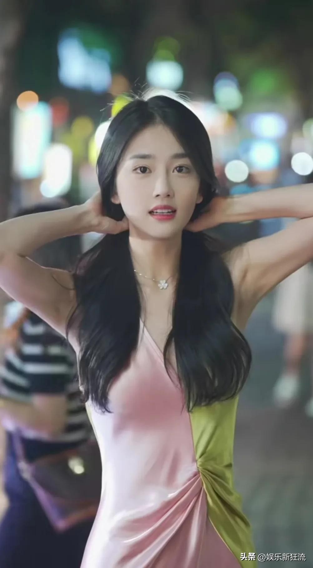 - 女神杨晨晨sugar粉色连衣长裙时尚穿搭