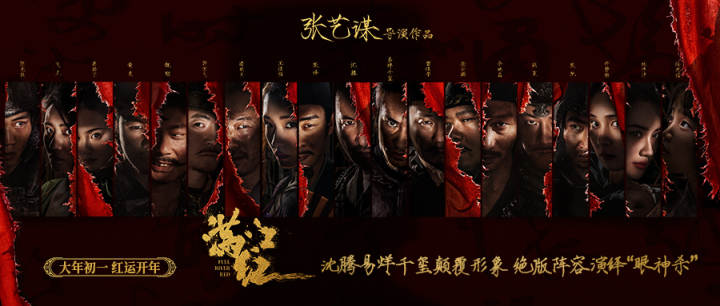 钱江晚报·小时新闻消息,12月29日,将于大年初一上映的张艺谋导演电影《满江红》发布19位演员单人海报,官宣全阵容:双男主沈腾、易烊千玺,领衔主演张译、雷佳音、王佳怡,主演岳云鹏、潘斌龙、余皑磊,郭京飞、欧豪友情出演,特别出演魏翔、张弛、黄炎,出演许静雅、蒋鹏宇、林博洋、飞凡、任思诺、陈永胜。海报以极具表现力的红色为基底,光影斑驳,充满张力。