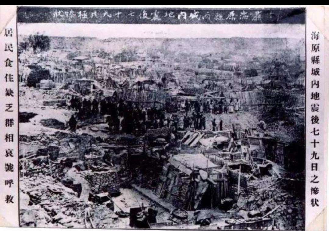 1920年12月16日 (农历冬月初七),20时06分09秒, 宁夏海原发生了8.5级大地震!据后来的地震工作者考察分析,这次地震的破坏程度,比当时确认的8.5级还要强烈,因为破坏最严重的海原干盐池一带的宏观烈度竟达到12度,并且,余震一直持续了3年之久。