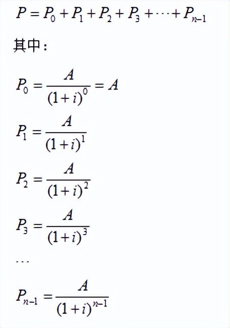 预付年金支付形式如下图所示。其现值就是将每期期初发生的现金流A,按照复利的原理计算其现在的值后再求和。关注点是现在的价值,“0时点的价值”。