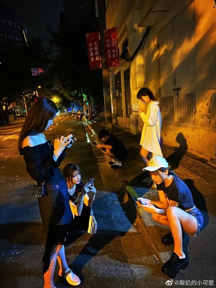 除此之外,在卢姥爷的超话里也有粉丝发帖,晒出了一张卢姥爷的照片,照片里,卢姥爷蹲在马路边上,旁边还站着一群美女。