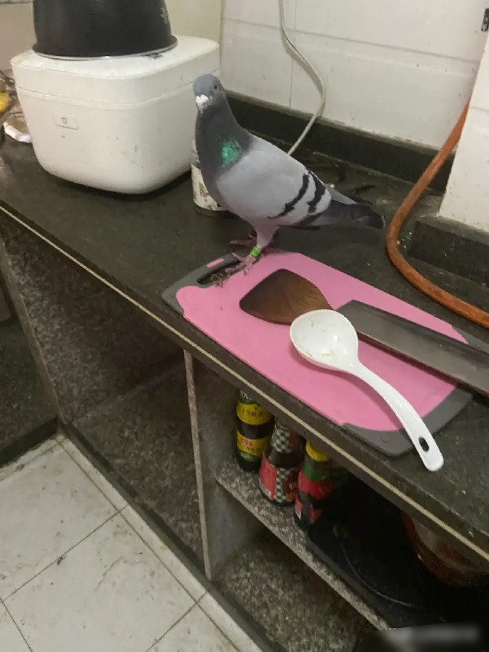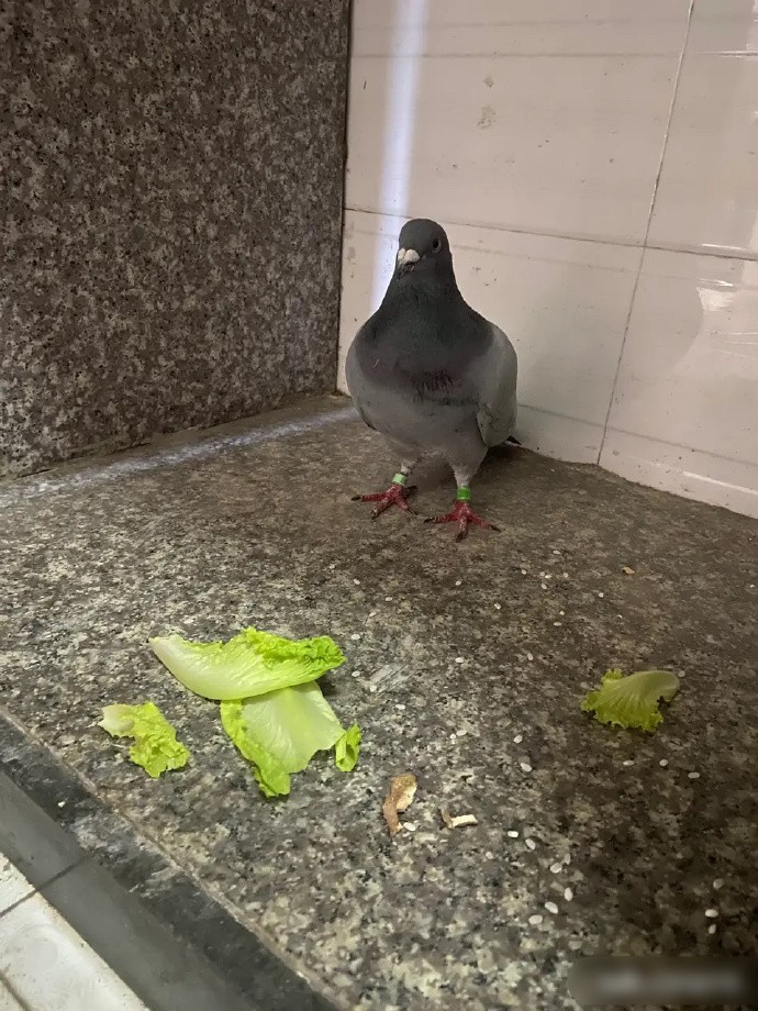 家里来了一只鸽子,赶不走,也没有敌意,就这么静静地看着我……喂它大米不吃,生菜也不吃,喝了一口水。啥意思啊这是,赖着不走了?