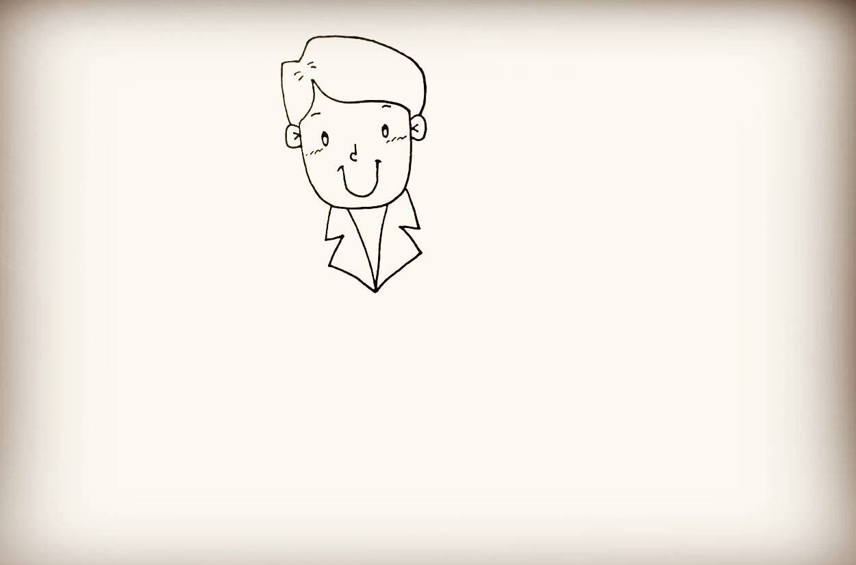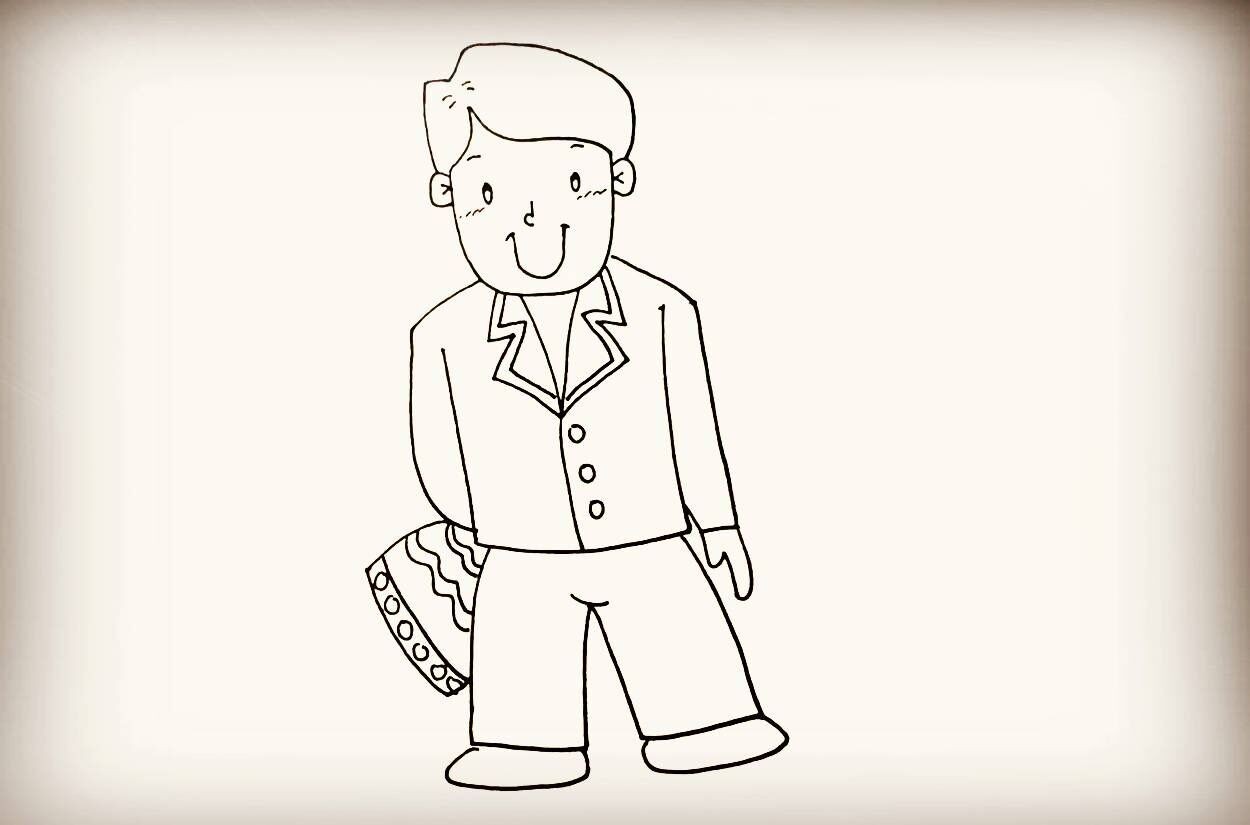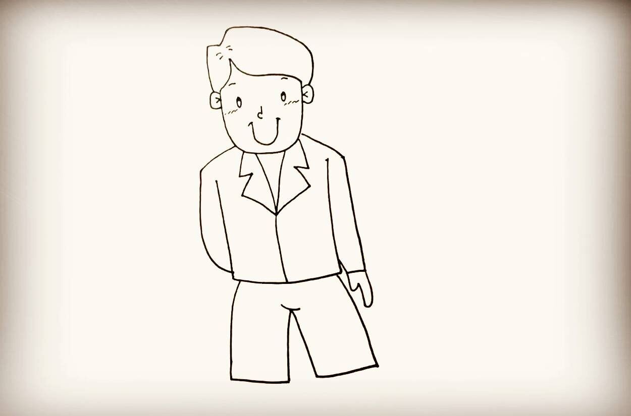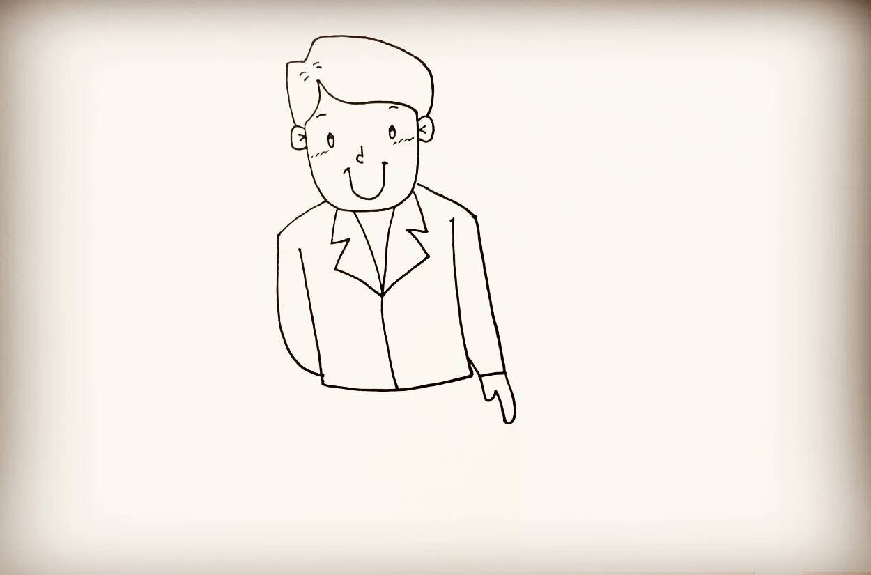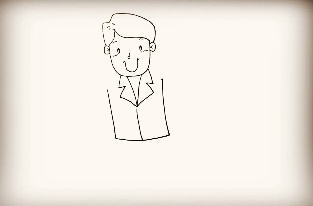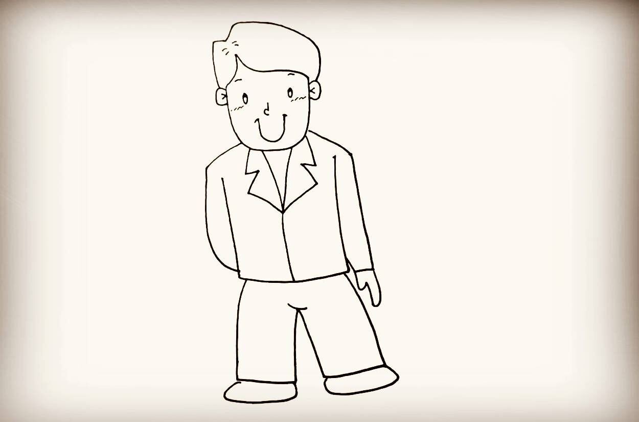接着画出他西服的外轮廓.注意二侧线条的长度。