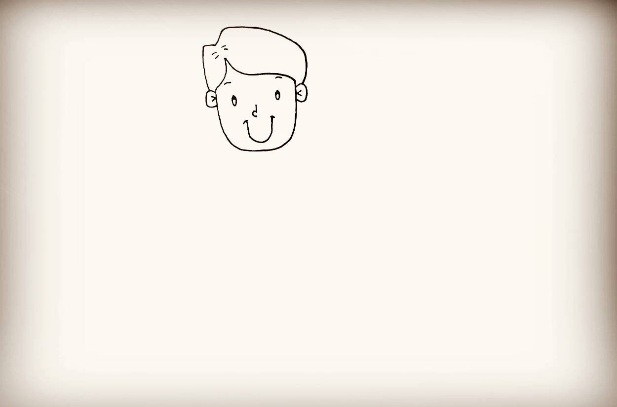 首先画上爸爸的脸颊.额头位置画出爸爸留的二八分刘海,还有耳朵.
