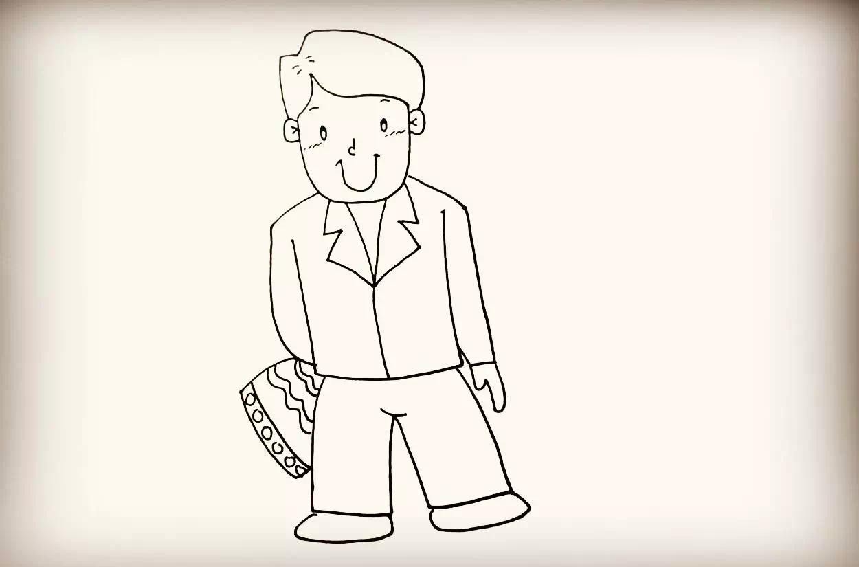 再画出爸爸的手提包,接着我们把提包用波浪线和圆圈给提包装饰一下。