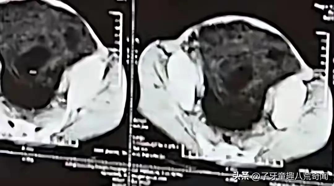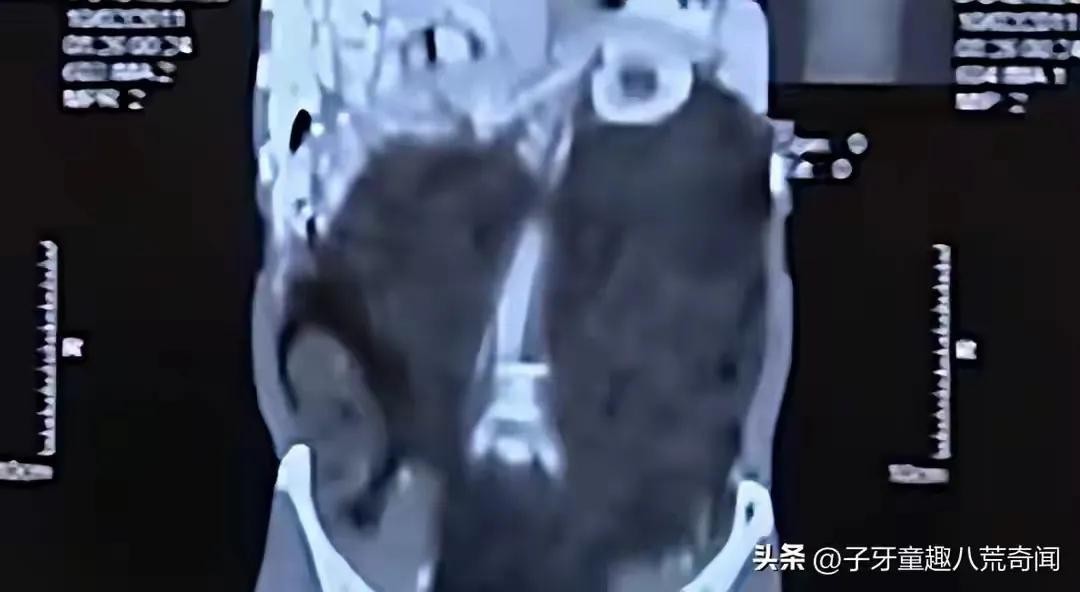在画面的一个角落,展示着倪洪喜的CT图与正常人的CT图对比。正常人的CT图上,腹部各脏器清晰可见,而倪洪喜的CT图上则是一片黑暗,形成鲜明的对比。