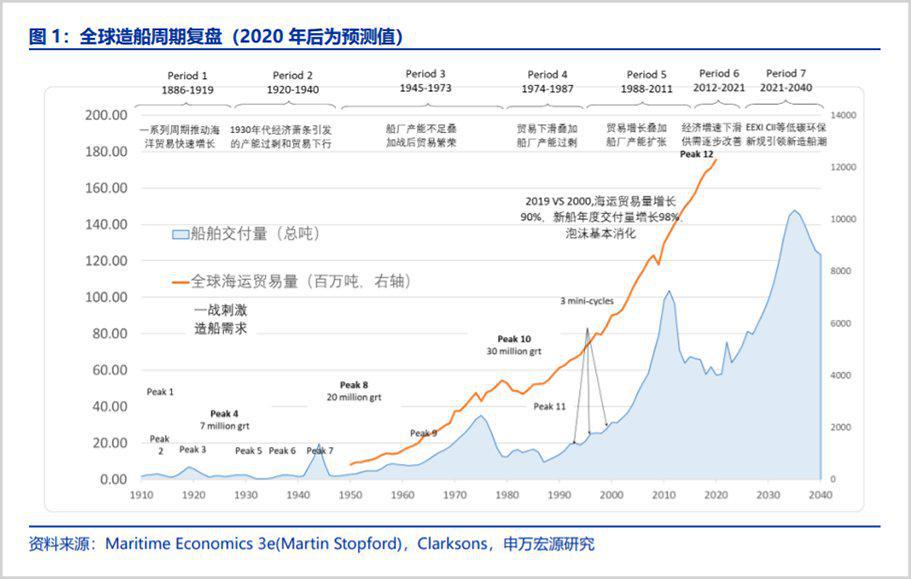 造船是典型的周期型行业,景气度主要受宏观经济、全球贸易、大宗商品价格、旧船更新等因素影响,周期的盛衰更替往往长达 20 年之久。