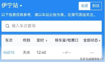 1.今日上午12:40分,K4010次列车将从从伊宁站发车,目的地甘肃天水。