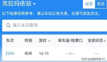 5.目的地为郑州的Z294次将于16:15从油城克拉玛依始发。