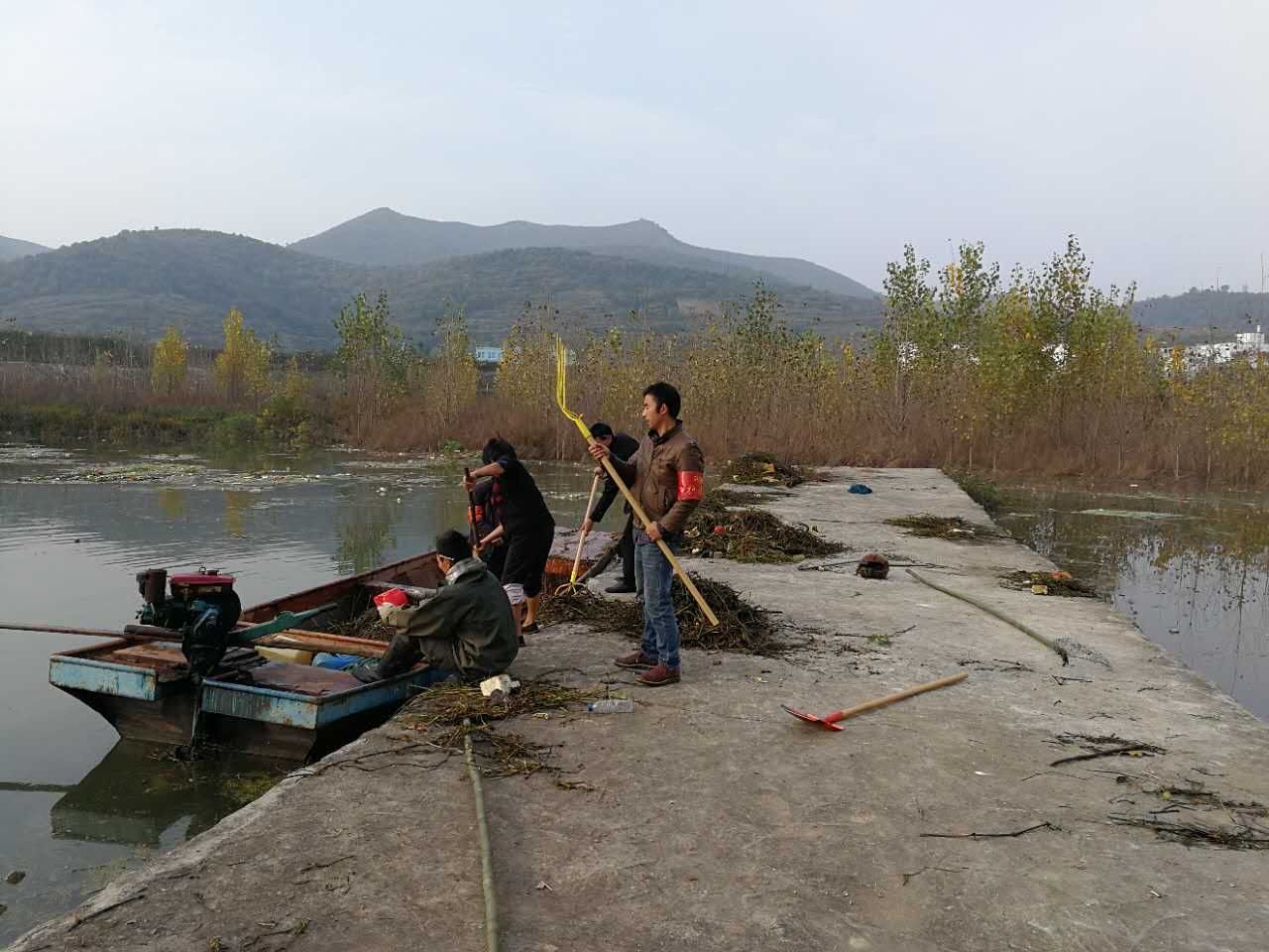 再次,镇环保站组织12名清洁工乘2只机船日常打捞河内杂物,专业护水队持续对紫气河两岸的白色拉圾、秸秆及其他水面漂浮物进行清理,为库区群众做示范,全民合力保水质,确保一库清水永续北送!