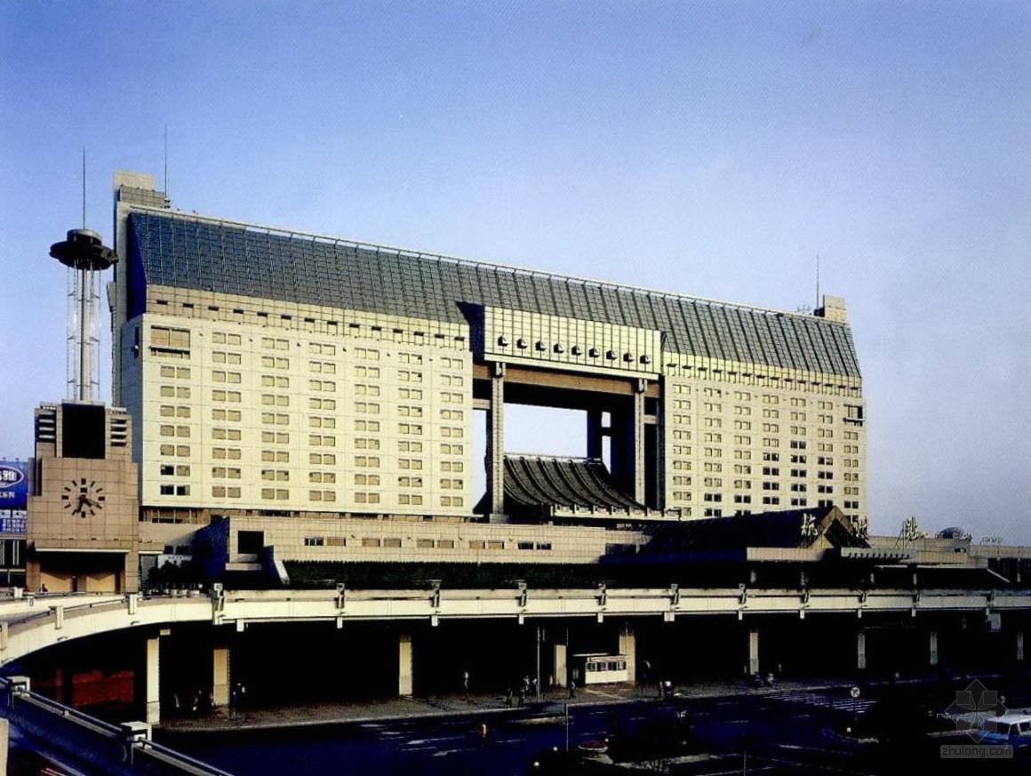 杭州站站房由程泰宁设计,采用了高进低出航站楼式,利用巨型空间木行架支撑网架结构体系,体现江南民居“粉墙黛瓦”意象。人字形屋顶、窗洞以及细节丰富的柱子,均由江南建筑元素衍生而来,又不失时代气息。
