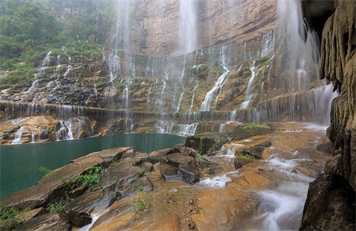 景区坐拥高峡平湖、雄奇峡谷、超高瀑群,犹如一幅鬼斧神工的峡谷画卷,分布着双龙瀑﹑见龙瀑﹑跃龙瀑﹑飞龙瀑﹑青苔瀑﹑川字瀑﹑叠瀑﹑三连瀑﹑龙浴湖瀑﹑珍珠帘瀑等十大瀑布,号称豫北最大瀑布群。
