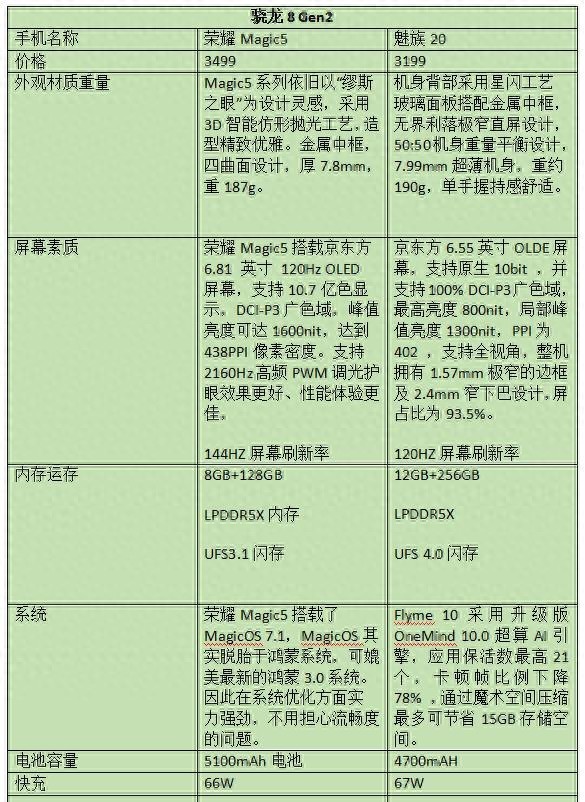 今天主要介绍最新骁龙8 Gen2处理器手机,分别是荣耀Magic5 8+256GB版本和魅族20 12+256GB版本。