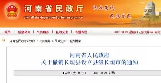 经国务院批准,同意我省撤销长垣县,设立县级长垣市。现将有关事项通知如下: