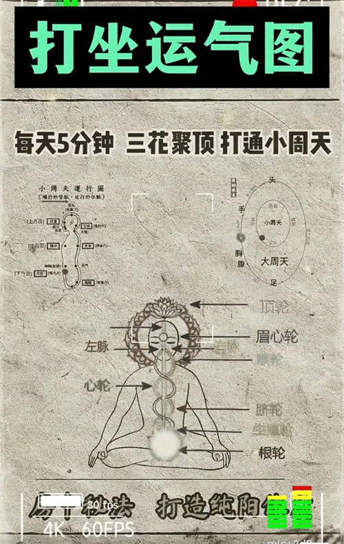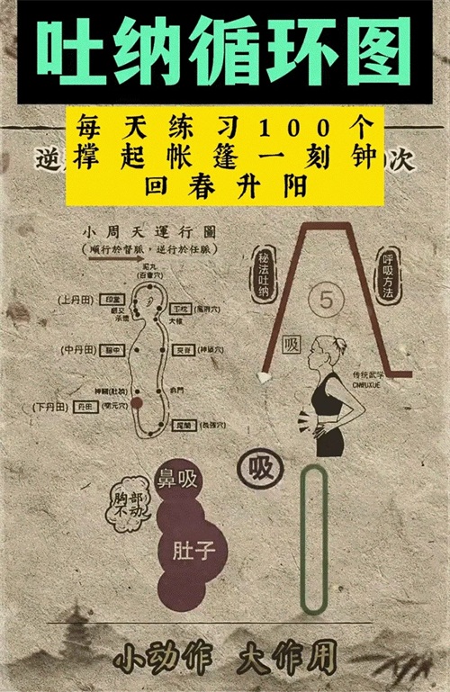 健康养生,超全中医吐纳循环及打坐运气示意图解,简单实用