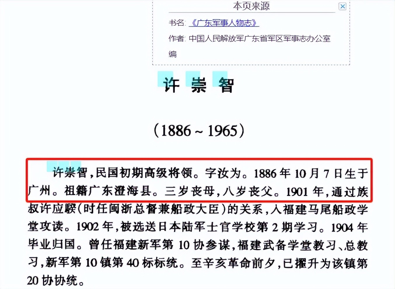 许崇智,字汝为,1886年10月7日出生于广东广州,祖籍广东澄海。