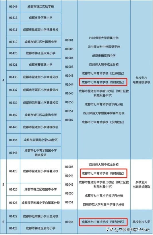 2024年学校小升初划片服务于锦江区4片、5片和6片区: