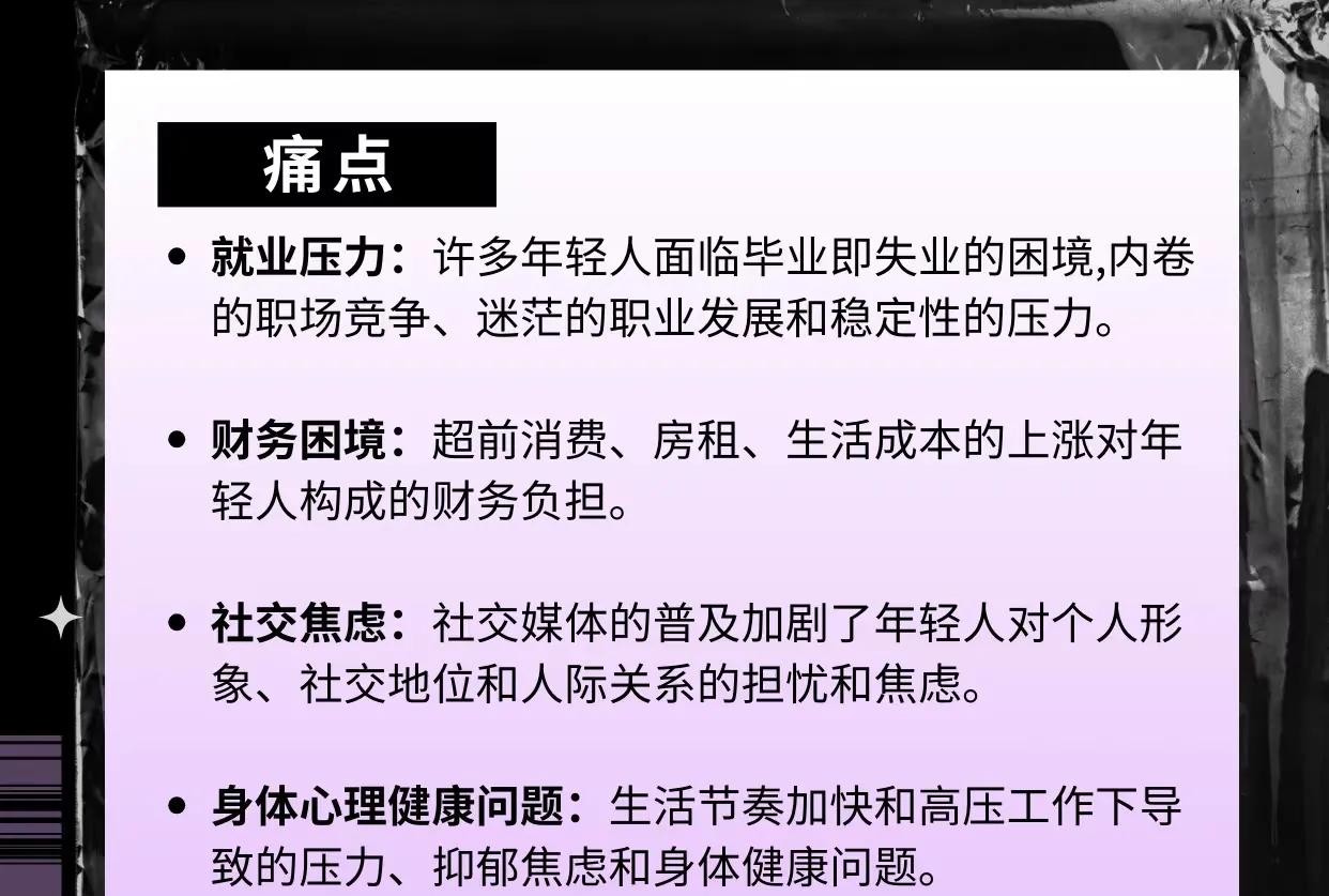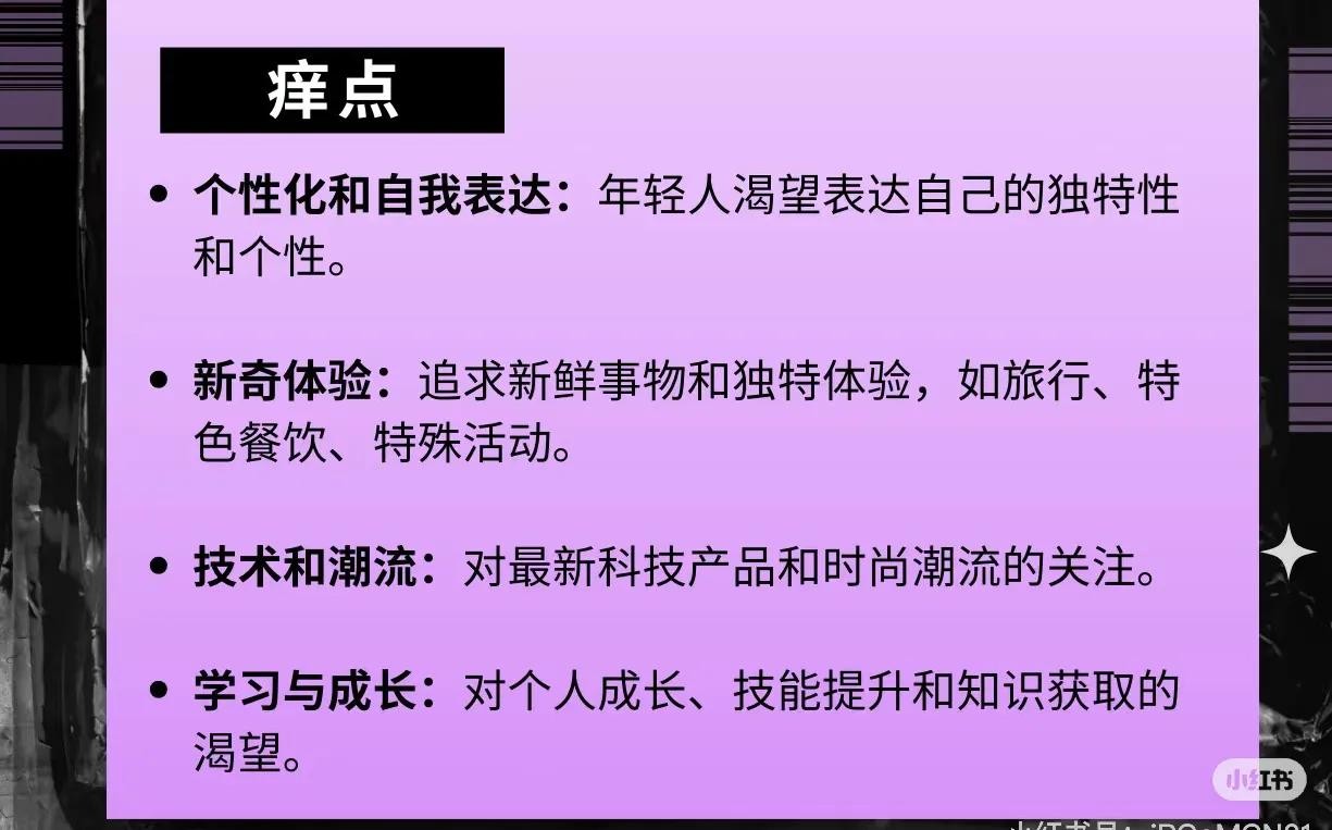 综上所述,当代年轻人的生活充满了痛点、爽点和痒点。面对生活的种种挑战,他们在寻求解决方案的同时,也努力寻找快乐与满足。虽然生活中的痛点让他们倍感压力,但在这个过程中,他们学会了珍惜每一个小确幸,并不断追寻内心深处的渴望。