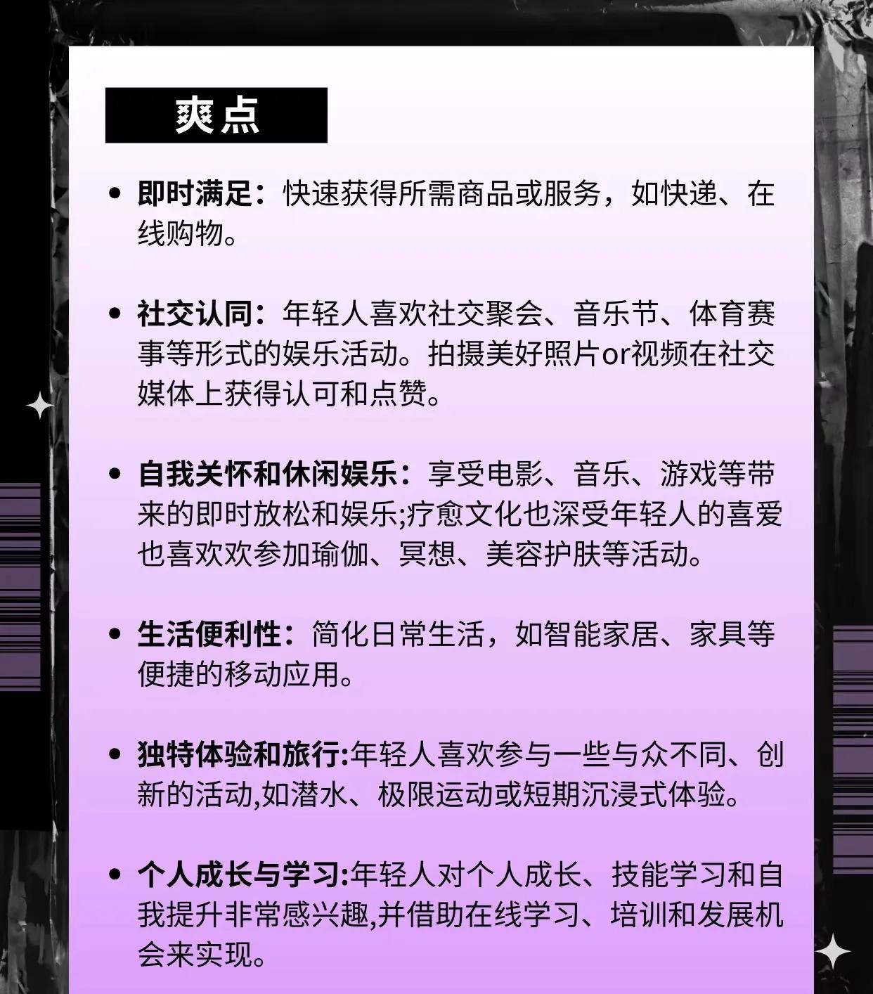 除了痛点和爽点,年轻人还有许多难以言表的“痒点”。这些痒点通常是情感上的渴望,是他们内心深处对于更美好生活的追求。