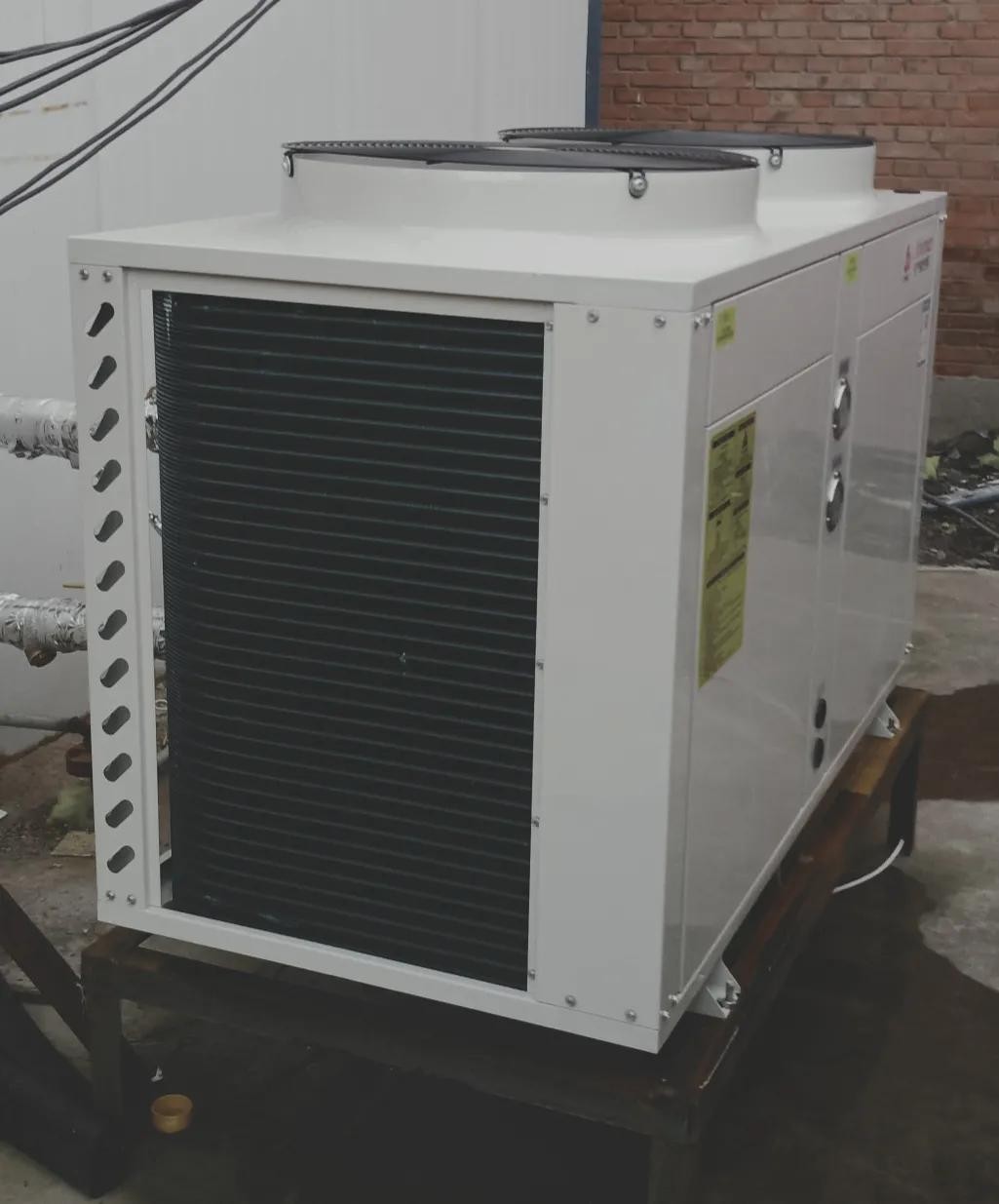下面来讲一下空气能热泵,它的制热模式是用电能驱动压缩机,压缩机做功使得压缩机内部的介质(R410)由液态变为气态,使得介质温度很低,从而可以将空气中的温度吸收进来,高热能的介质把温度通过换热设备给水加热,从而达到取暖的目的!它的热效比可以达到1:3.5。