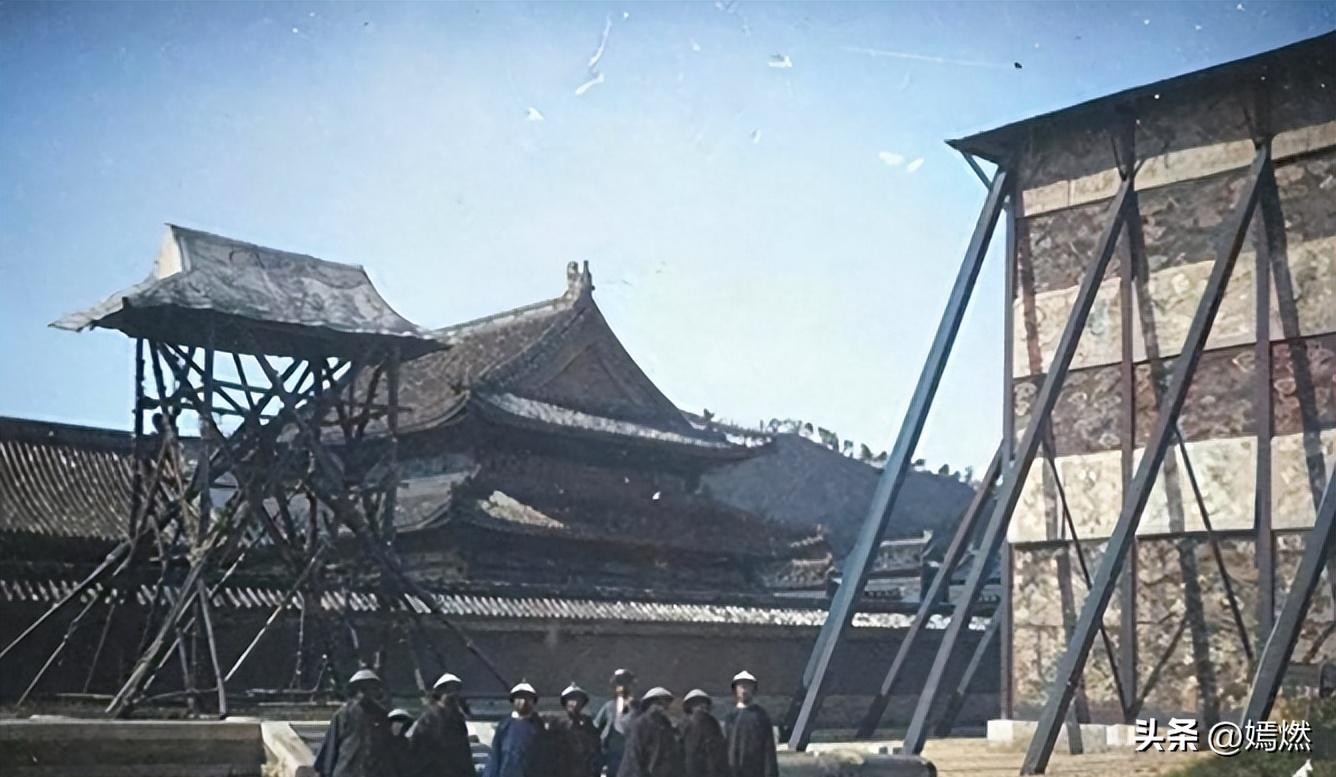 32 在清末时期的皇家陵墓内的官员的留影,当时慈禧太后的陵墓由于受到自然因素的影响,出现了破损和老化,这些官员就是被派遣到此修复的。