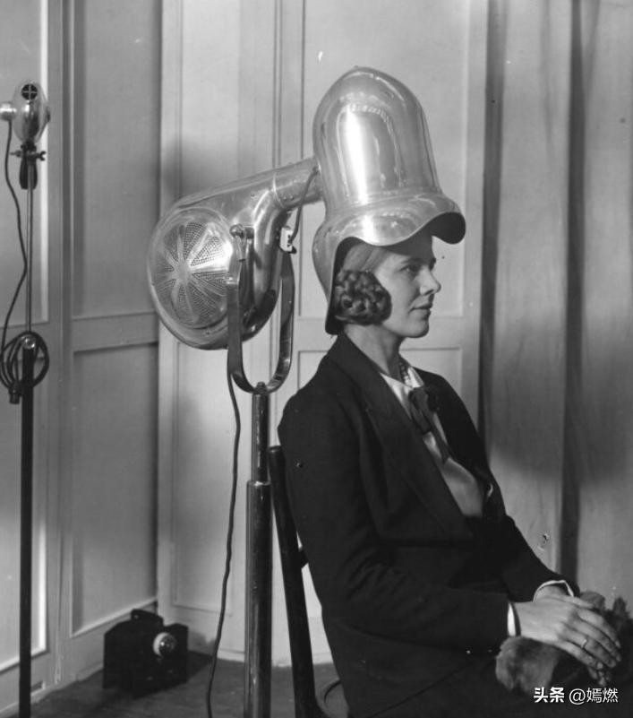07 1890年,法国的一位造型师,发明了一款用指支架固定的镀铬吹风机,照片中一位女顾客,正在体验吹风机的功效。虽然吹风机在17世纪末就被发明出来了,但是一直到20世纪的20年代,手持吹风机才正式被发明出来。